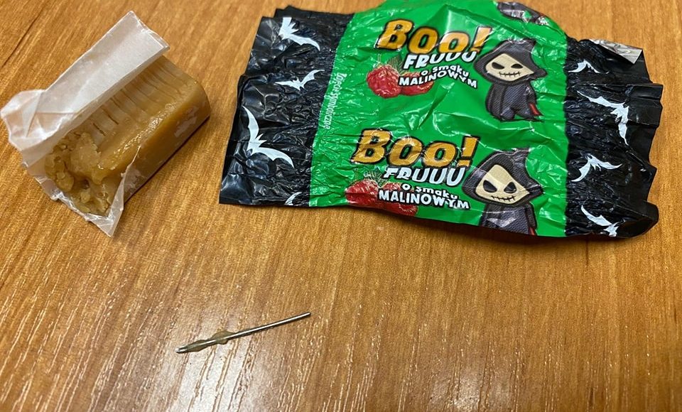 Igła w cukierkach, które otrzymały dzieci podczas halloween!