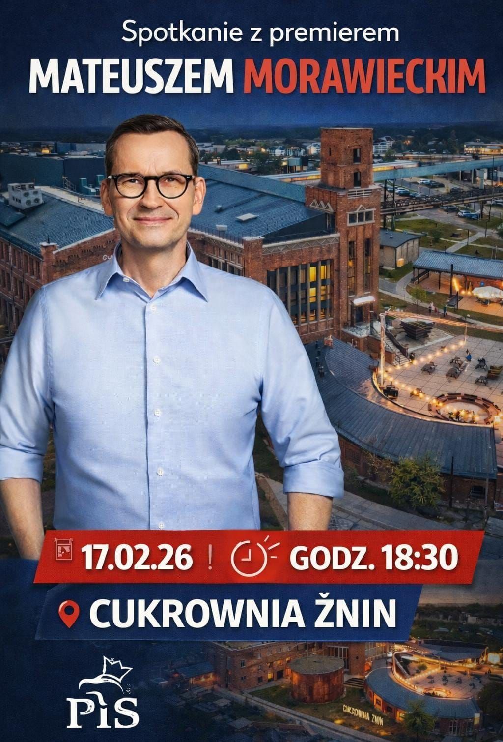 W przyszły wtorek, 17 lutego, do Żnina przyjedzie Mateusz Morawiecki, były premier Polski, a obecnie wiceprezes Prawa i Sprawiedliwości. Spotkanie z mieszkańcami powiatu żnińskiego i okolic odbędzie się w sali Wysłodki w kompleksie „Cukrownia Żnin” przy ul. Ks. Janickiego 1. Początek o godzinie 18:30.