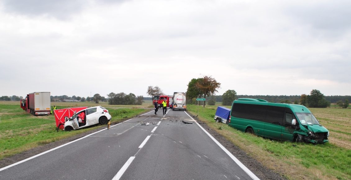 Do wypadku doszło w piątek (27.09.2019) o godzinie 13:10 drodze krajowej nr 15 w miejscowości Czerniak, w powiecie mogileńskim. Według wstępnych ustaleń, poruszający się w stronę Strzelna pojazd ciężarowy marki Volvo nie zachował bezpiecznej odległości od jadącej przed nim ciężarowej Skanii i chcąc uniknąć zderzenia zjechał na przeciwległy pas, gdzie uderzył bokiem w nadjeżdżający z przeciwka samochód nauki jazdy marki Toyota. W wyniku tego osobowa Toyota obróciła się i odbiła od jadącego za nią busa marki Mercedes. Na miejscu śmierć poniósł 52-letni instruktor jazdy, natomiast 44-letnią kursantkę przewieziono do szpitala. Droga w tym miejscu była przez 5 godzin całkowicie zablokowana, a ruch odbywał się wyznaczonymi objazdami.