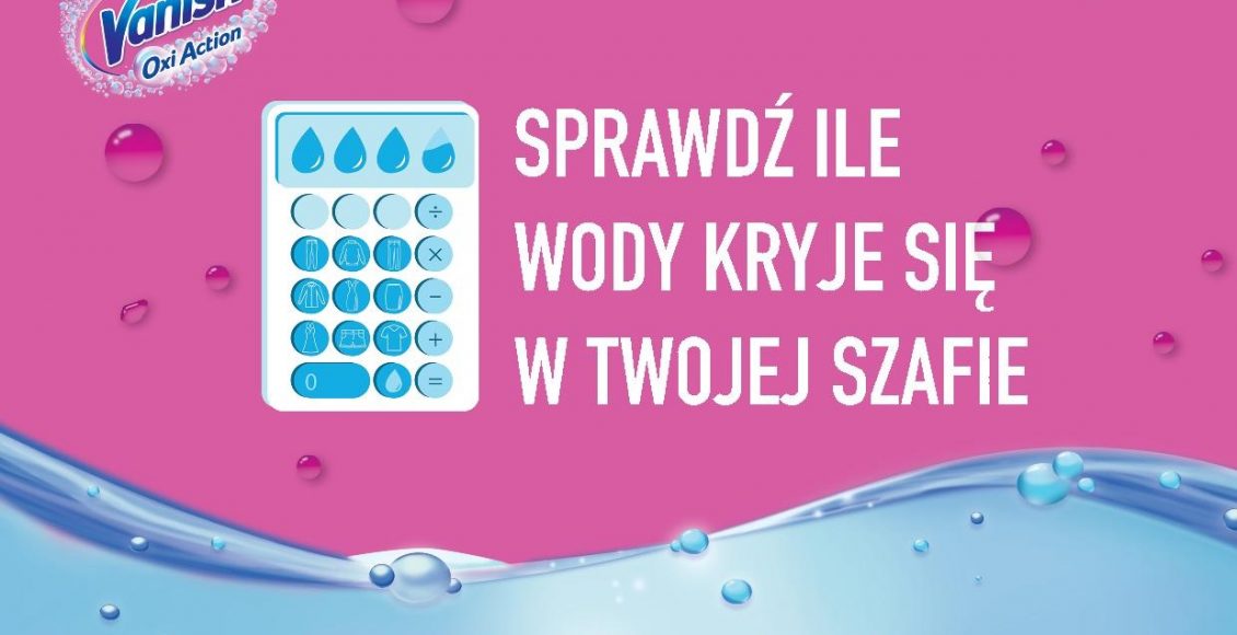 Dużą rolę w temacie troski o planetę odgrywają codzienne, zwykłe wybory dotyczące zakupów ubrań, ich pielęgnacji czy wreszcie „długości ich życia”. Okazuje się bowiem, że niewiele z nas zdaje sobie sprawę ile wody kryją w sobie ubrania, które zalegają w naszych szafach. Wystarczy sięgnąć do kalkulatora śladu wodnego www.vanish.pl/nosubraniadluzej, aby przekonać się, że do produkcji 1 t-shirtu potrzeba ok. 2 500 litrów, a para jeansów to już znacznie ok. 6 727 litrów. Jest zatem oczywiste, że w każdej szafie kryją się tysiące litrów wody, której nie dostrzegamy oddając się szaleństwu zakupów.