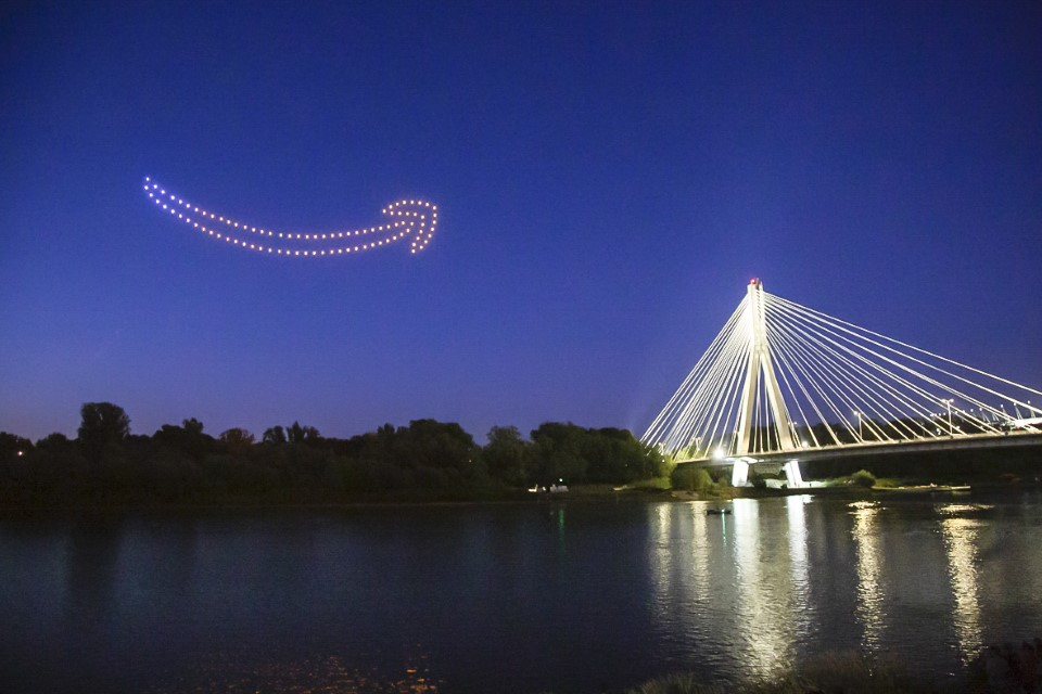 Specjalny pokaz dronów w Warszawie z okazji pierwszego Amazon Prime Day w Polsce